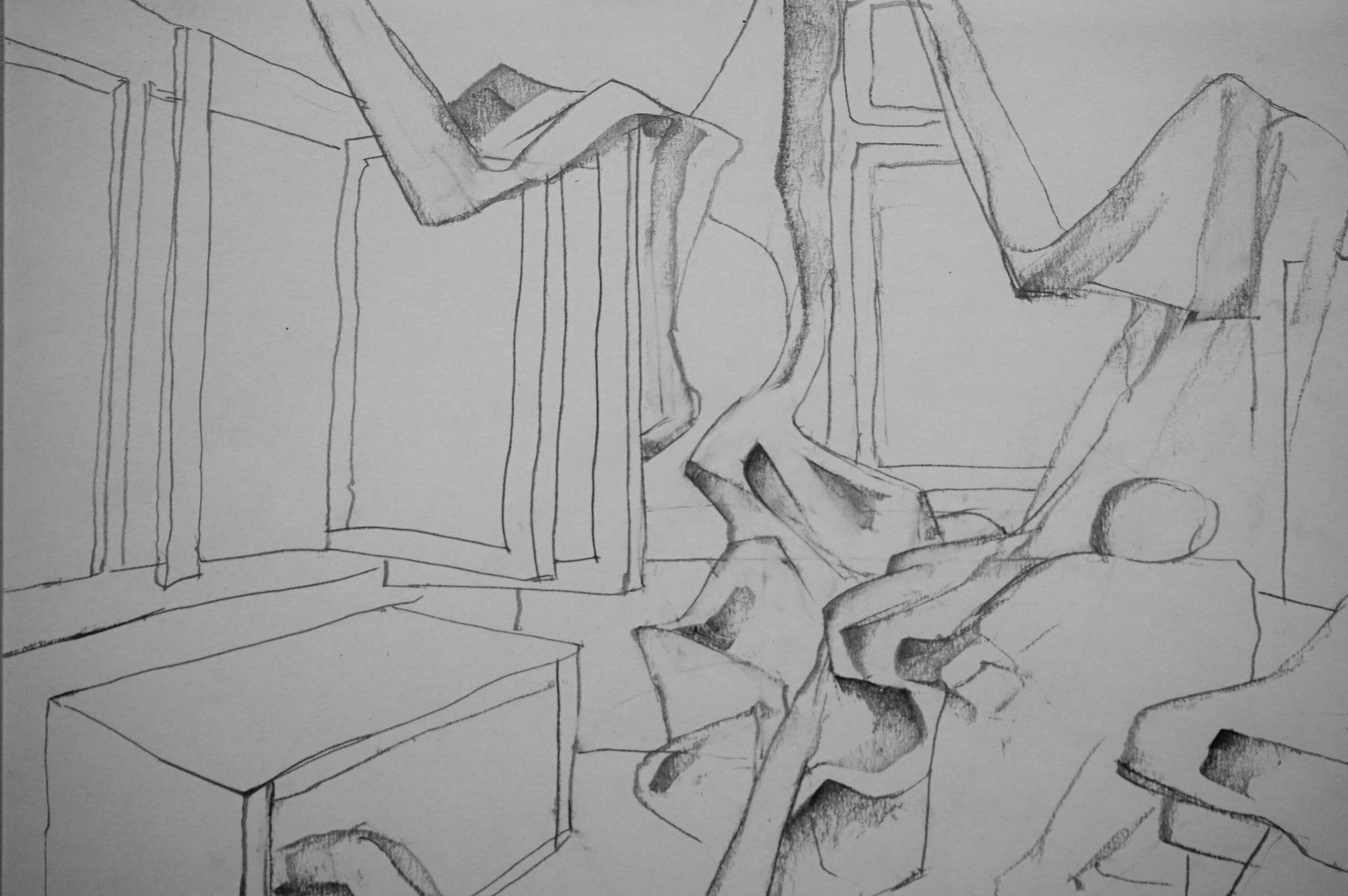 Vicončaij: Dieser Hintergrund ist für die Gestalt des Buches prägend. So wurden die meisten Göttererzählungen Anfang 2014 für eine Veranstaltung im Zentralwerk geschrieben, die den Anfang eines neuen Ortes zum Motto hatte. Es war ein Ball, mit Tanzdarbietungen und viel Musik. Die Mythen wurden in Gruppen unterteilt und von Mitgliedern von „Theatrale Subversion“, einem Theaterkollektiv gesprochen. In einem schwarzen Kasten, mit einer Kamera, und Bildschirm, der sie dann indirekt sichtbar machte. Damit wurde der Abend strukturiert. Mit fast jedem Mythos begann die Welt neu, begann der Anfang neu. Die Struktur ist für das Buch übernommen. Auch hier bilden die Mythen den Rahmen. Dieses immer wieder von Neuem Entstehen ist auch hier tragend.